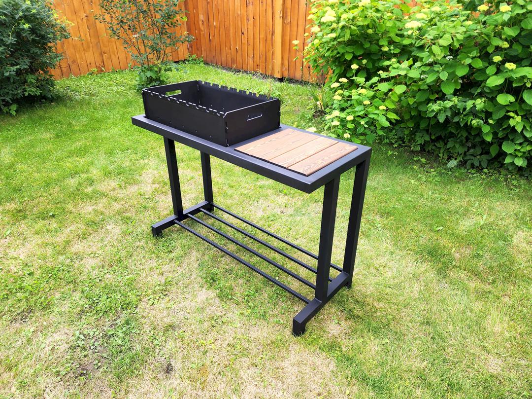 Мангал модели SIGMA — это воплощение надёжности и стиля. Изготовлен из высококачественной стали с термостойким покрытием до 1200°C. Габариты: 1100 × 900 × 440 мм.